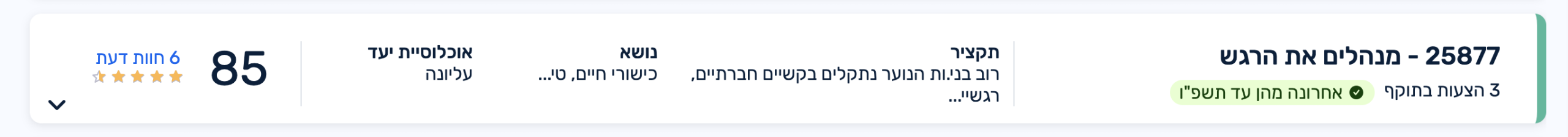 אנו עורכים סיכומי תהליך עם צוותי החינוך והתלמידים. מעל 85% מהמשתתפים מדווחים על שינוי חיובי בהתנהלות הרגשית והמוטיבציה ללמידה.